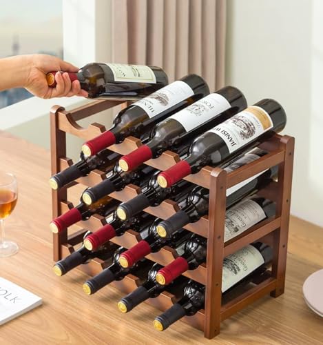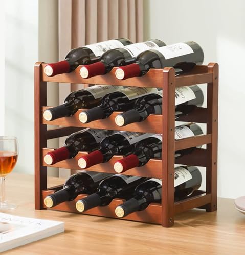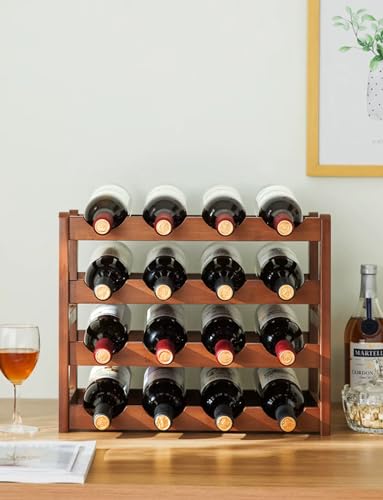 HaHuHaHu - رف مشروبات من البامبو، 4 طبقات،لحمل 16 زجاجة، حامل زجاجات عصير، رف تخزين للعصير من هاهوهاهو