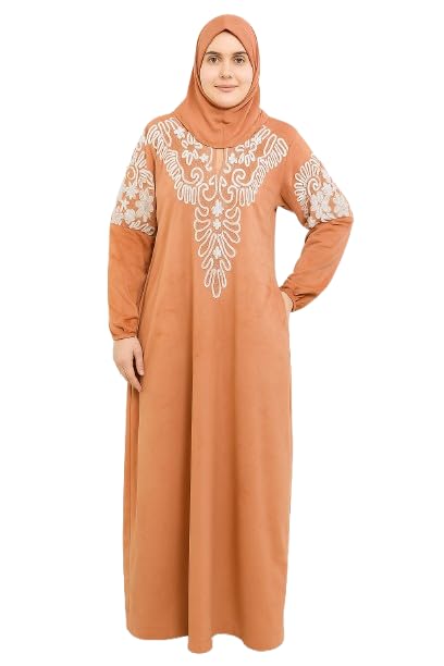 Generic - عباية استقبال مخملية من هايدي، فستان تقليدي بطول كامل مع تطريز ابيض، مجموعة الشتاء، مناسب للمناسبات الخاصة حتى 100 كجم