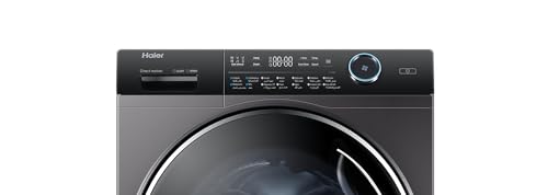 Haier - غسالة تحميل أمامي 10.5 كيلوجرام مع مجفف 6 كيلوجرام بأسطوانة سوبر 525 ملم ومحرك انفرتر عاكس بحركة مباشرة ولحام بالليزرونظام اي-ريفريش من هاير، لون فضي غامق، HWD100-B14979S8