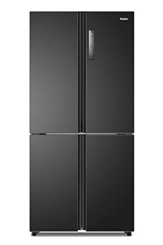 Haier - ثلاجة 4 ابواب (فريزر سفلي) سعة 550 لتر بخاصية اذابة الثلج (نو فروست) انفرتر من هاير، لون اسود لامع