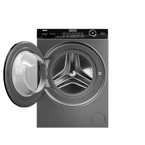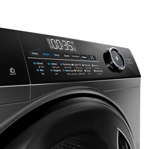 Haier - غسالة من هاير واشينج ماشين بتحميل أمامي سعة 8 كيلوجرام باللون الفضي مع تقنية البخار الصحي