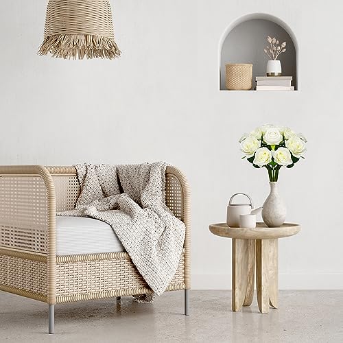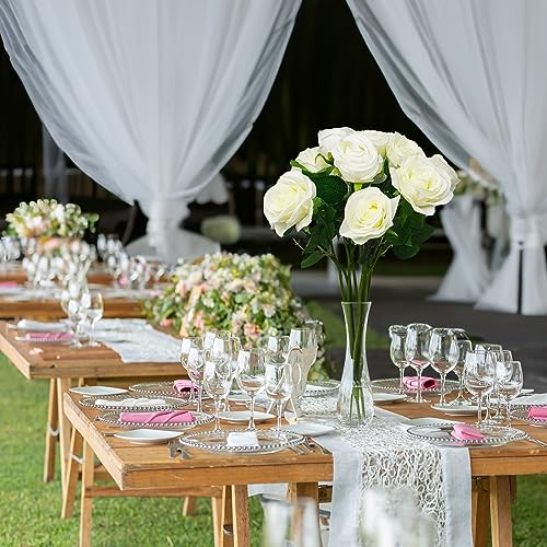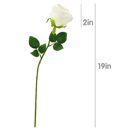 hailanbao - ورود صناعية واقعية من الحرير بسيقان طويلة للتنسيق اليدوي للباقات وديكورات حفلات الزفاف والمناسبات من هايلانباو، لون أبيض، طول 48.26 سم 12 قطعة