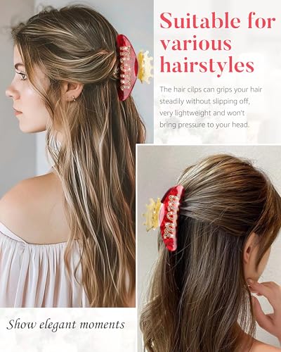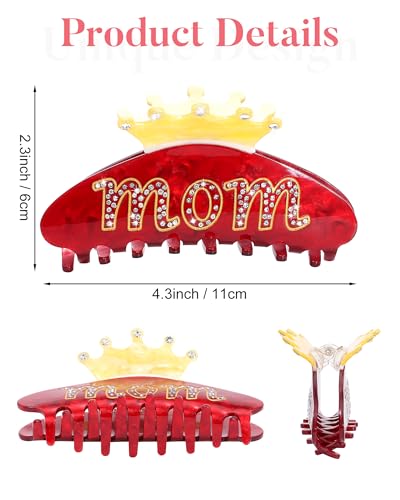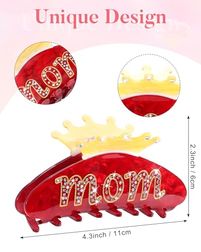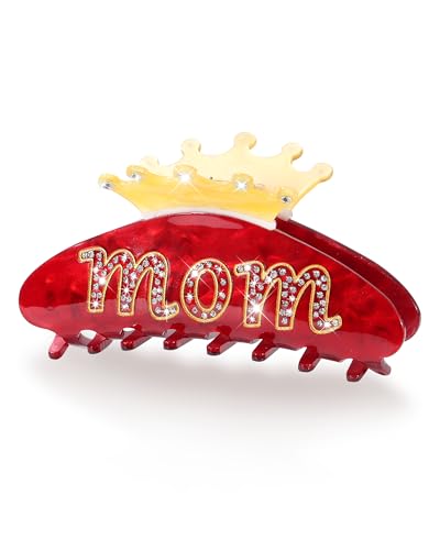 HaimeiKang - هايميكانغ مشابك شعر مرصعة باحجار الراين للنساء والامهات - مشبك شعر اكريليك بنمط الام للفتيات، مشبك شعر كبير الحجم للشعر الكثيف والرفيع، هدايا للام، قطعة واحدة (احمر-ام)
