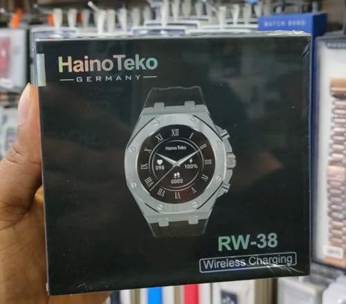 Generic - ساعة ذكية جيرماني RW38 بشاشة عرض دائرية كاملة وشاحن لاسلكي للرجال من هاينو تيكو، لون فضي