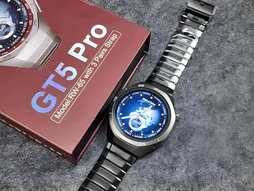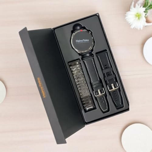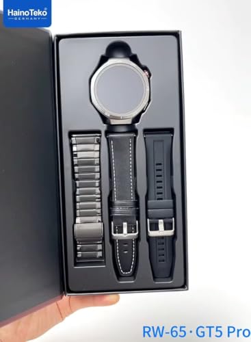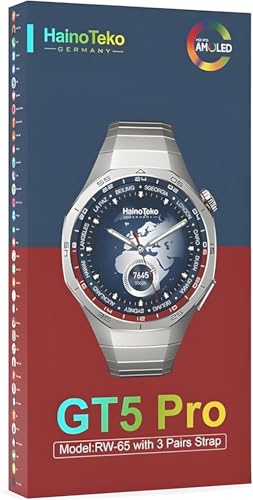 HainoTeko Germany - ساعة ذكيةهاينو تيكو جيرماني جي تي 5 برو RW-65، شاشة اموليد، مساعد صوتي، 3 أساور، شحن لاسلكي (اسود) من من هاينو تيكو