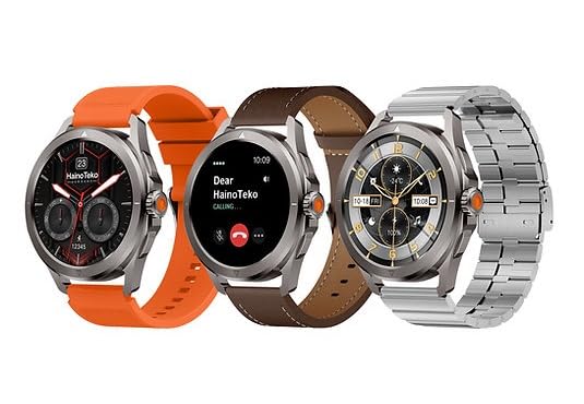 HainoTeko Germany - ساعة ذكية مقاومة للماء 19 من هاينوتيكو - شاشة اموليد، مكالمات بلوتوث، تتبع اللياقة البدنية والصحة، مجموعة من 3 اساور - فضي
