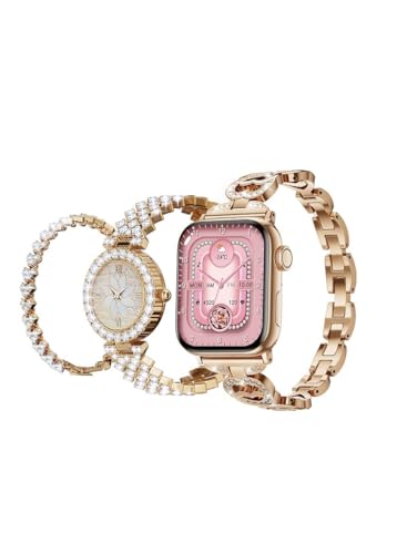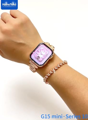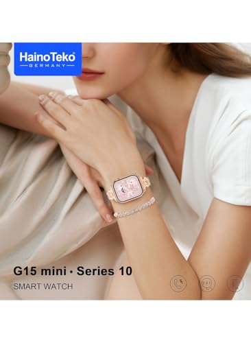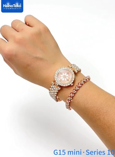 HainoTeko Germany - مجموعة ساعة ذكية صغيرة G15 سلسلة 10 أنيقة مع ساعة أنالوج وسوار مع 3 أزواج من الأساور وكابل شحن مصمم للنساء من هاينوتيكو