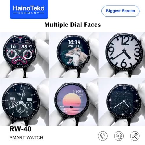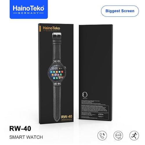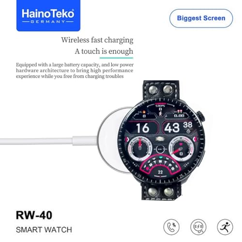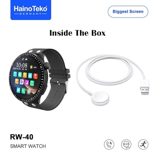 HainoTeko Germany - ساعة ذكية من هاينو تيكو جيرماني RW40 بشاشة كاملة 53 ملم اكبر شاشة دائرية مع شاحن لاسلكي مصممة للرجال والاولاد - اسود
