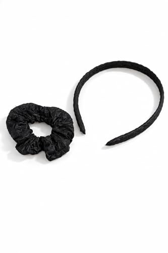 Generic - طقم إكسسوارات شعر ، طوق رأس وربطة شعر، نسيج منقوش، قطعتين (اسود)