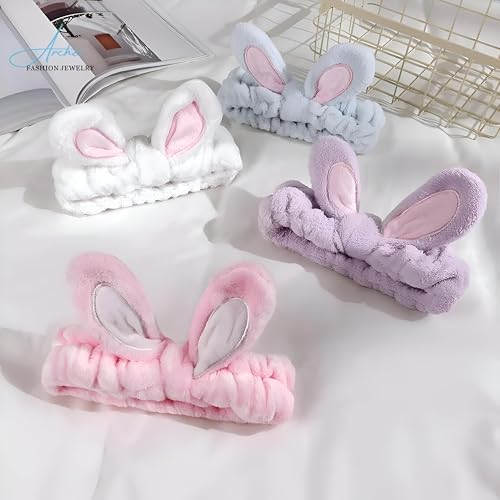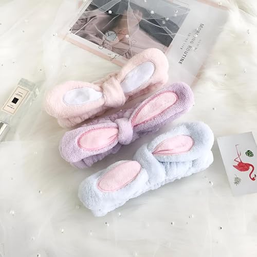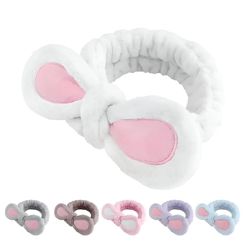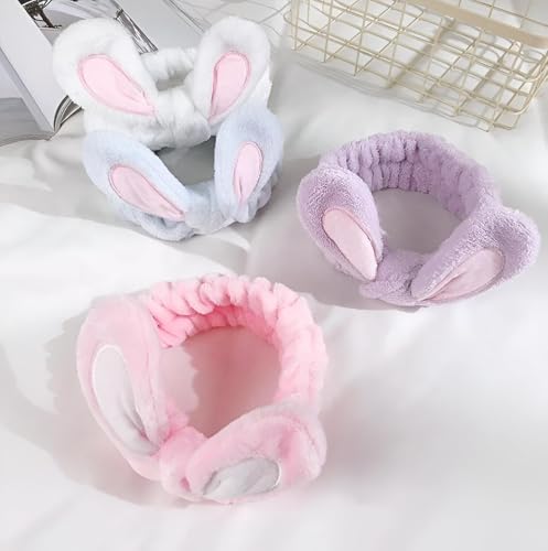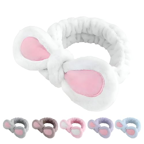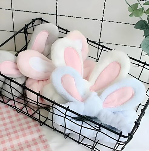 Generic - رباطات إكسسوار شعر - شريط رأس بتصميم أذني أرنب مجسمة على الطراز الكوري لمكياج الوجه، رباط شعر عريض للبنات والنساء (لون أبيض)