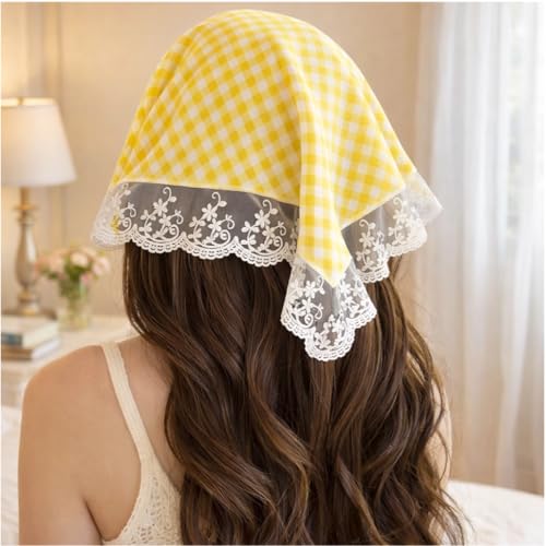 Generic - طوق للشعر بتصميم سكارف للرأس، باندانا شعر دانتيل بنمط ريفي رومانسي للنساء . (اصفر)