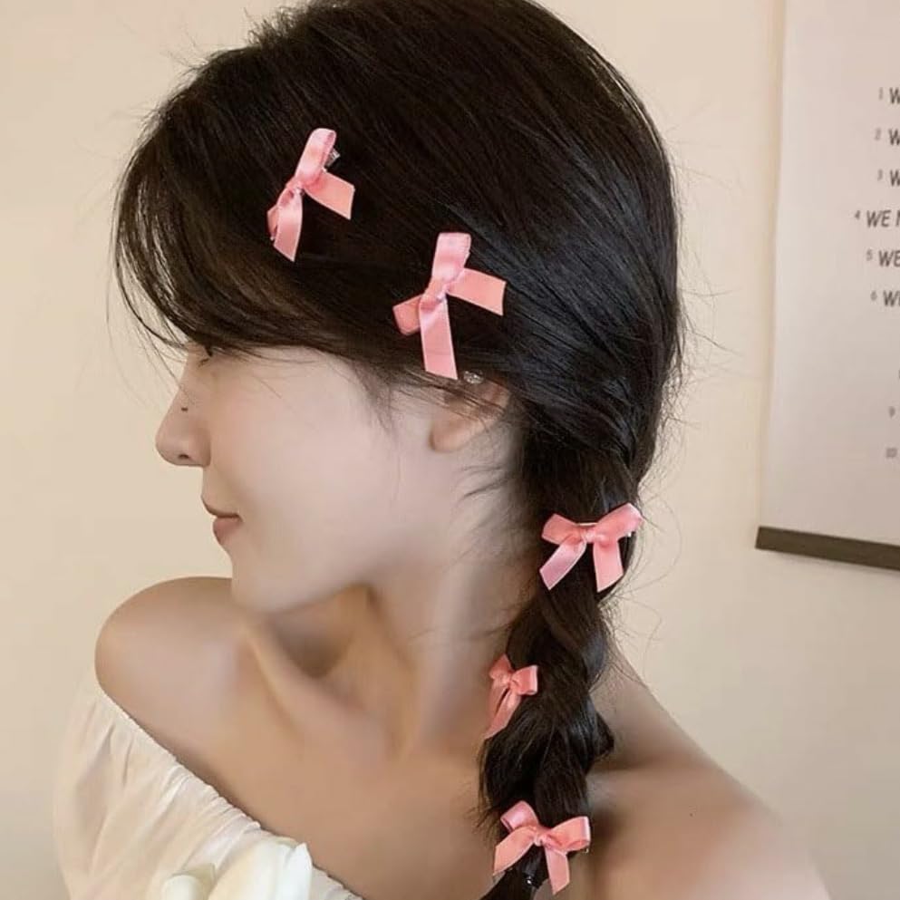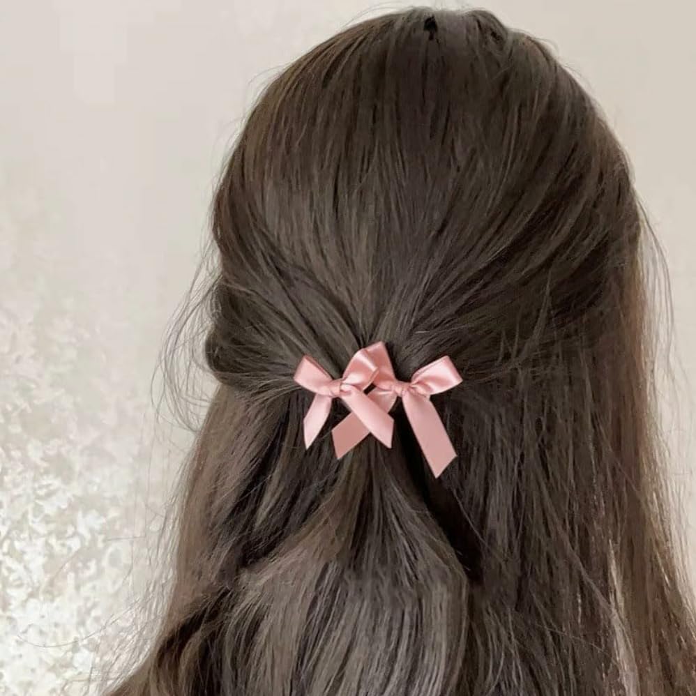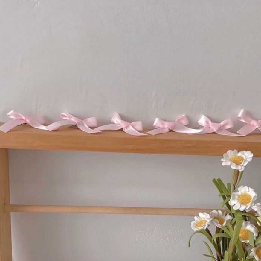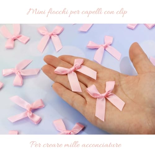 Bottega della Principessa - فيونكات شعر للنساء والبنات - مشابك شعر مع فيونكة من شريط حلاقة - مشابك صغيرة على شكل فيونكة - مجموعة من 12 قطعة (وردي)