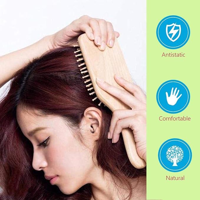 - 🍓🌼️- أسنان مشط ثابتة، مع أطراف كروية، لن تتمزق أو تسحب الشعر أثناء فك التشابك والتصفيف. 🍓🌼️مثالي للشعر الكثيف، ويساعد على تمشيط الشعر بسهولة وسلاسة.