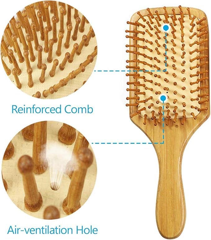 - 🍓🌼️رأس الفرشاة العريضة هذه مصممة لفك تشابك الشعر الرطب أو الجاف بلطف. 🍓🌼️مقبض من الخيزران، مصمم هندسيًا، مريح جدًا للحمل.