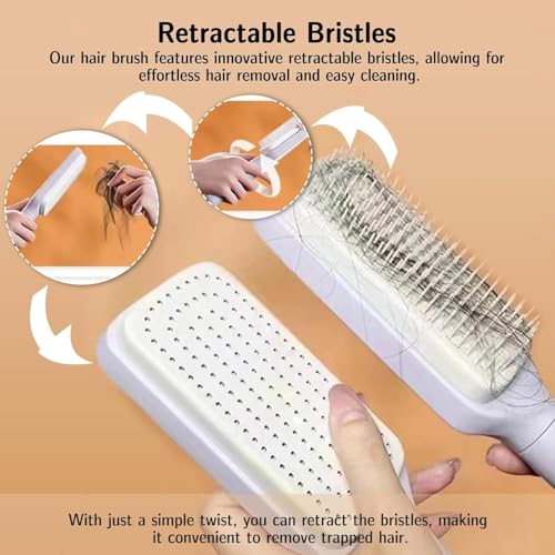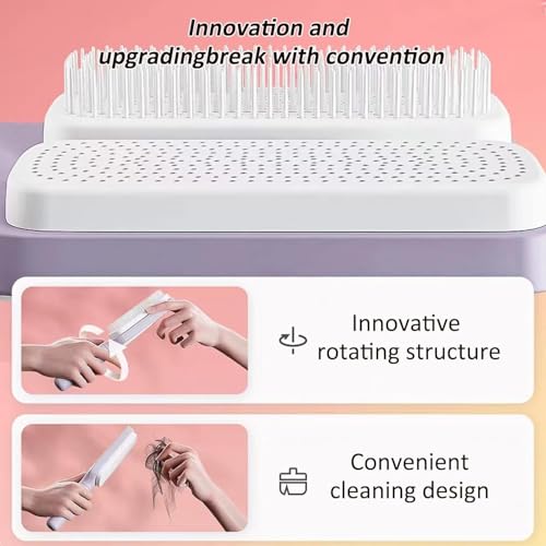 - مقبض دوار للتحكم --- الميزة الفريدة لفرشاة الشعر ذاتية التنظيف القابلة للتوسيع للنساء هي القدرة على تدوير المقبض، مما يسمح لك بالتحكم في رفع أسنان المشط. تساعد الأزرار على تأمين الوضع المطلوب، مما يجعل تنظيف تساقط الشعر سهلاً.