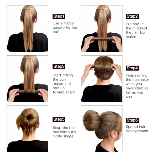 - 【سهلة الاستخدام】 مثالية للشعر متوسط الطول وذو السماكة العادية. قد لا تكون مناسبة للشعر الخفيف جداً أو الكثيف جداً أو القصير أو الطويل. في ثانية واحدة فقط، تبقى جميلة طوال اليوم. ضعي الأداة بين خصلات ذيل الحصان، ولفيها حتى القاعدة، ثم ثبتيها لتشكيل كحكة مثالية.