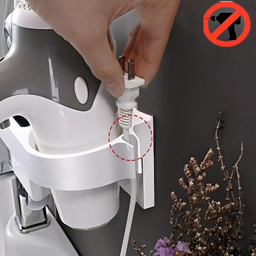 Generic - حامل مبتكر لتنظيم مجففات الشعر والفرش وأدوات العناية بالشعر، بتصميم لا يتطلب ثقب الحائط لسهولة التركيب، متوفر في مجموعة من الألوان
