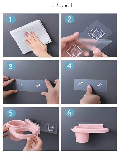 - يتميز حامل مجفف الشعر هذا بسهولة التركيب. ما عليك سوى إزالة الطبقة الواقية من اللاصق، ولصقها على سطح نظيف وأملس وتعليق الحامل. يوصى بتنظيف الجدار مسبقًا وتجنب الرطوبة أثناء التركيب. للحصول على القوة المثلى، من الأفضل تركيبه على جدار مسطح وتركه 24 ساعة قبل الاستخدام.