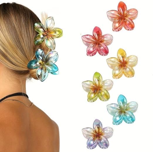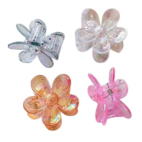 GOGO.EG - مشابك شعر بتصميم زهرة من الأكريليك الشفاف، 4 قطع، ألوان متنوعة، متعددة الألوان، RM30