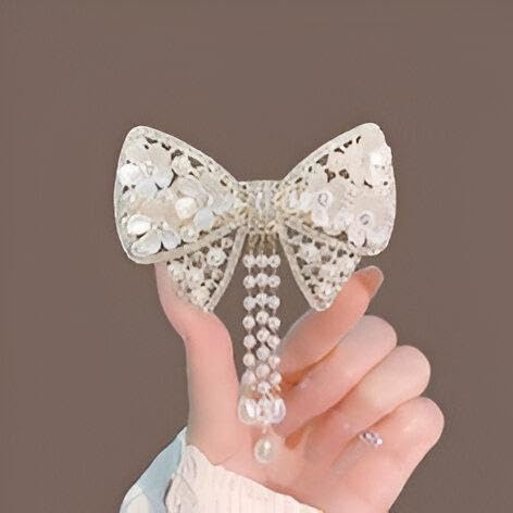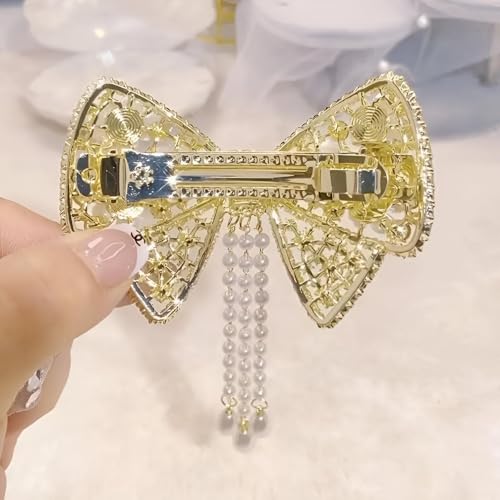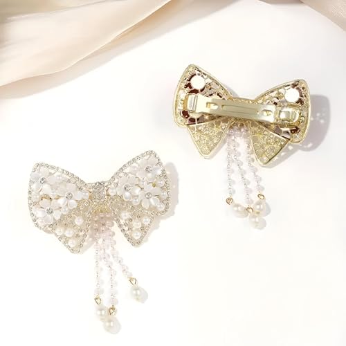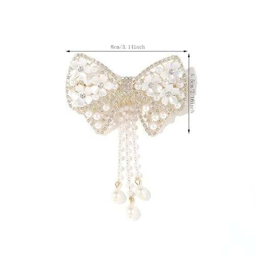 Generic - مشبك شعر بتصميم زهرة لامعة أنيقة مع شراشيب من اللؤلؤ الصناعي للبنات والنساء، حامل مثالي لتسريحة ذيل الحصان