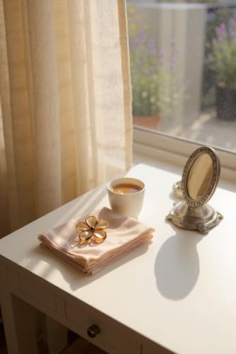 - - تصميم بتلات منحوتة: تصميم بخمس بتلات مستديرة بلمسة لامعة وحواف بنية تضيف عمقًا وأناقة.