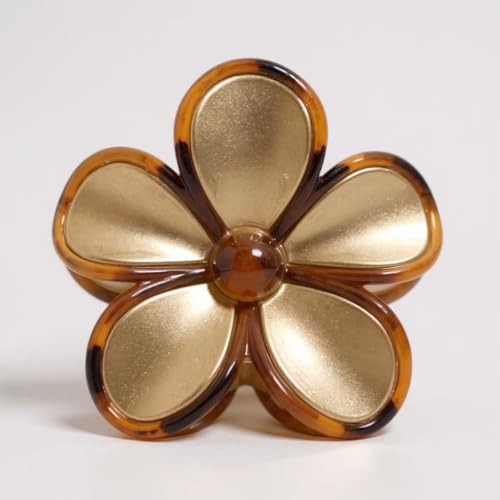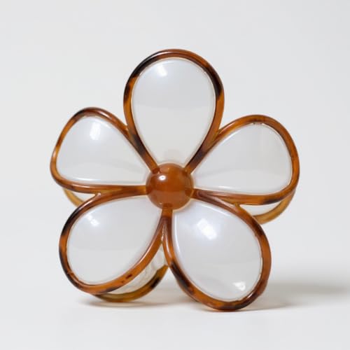 Generic - مجموعة من 3 مشابك شعر بتصميم زهري أنيق للنساء، بألوان بني وكراميل وأبيض وكراميل وذهبي وكراميل