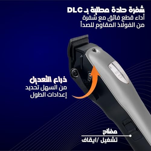 - 💈 ماكينة حلاقة وتشذيب احترافية - تقدم نتائج بجودة الصالونات في المنزل مع محرك قوي بقوة 8 وات وشفرات دقيقة من الفولاذ المقاوم للصدأ لقصات ناعمة ونظيفة لجميع أنواع الشعر.