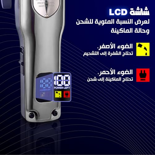 - 📊 شاشة LCD ذكية: راقب مستوى البطارية وحالة التشغيل في الوقت الحقيقي من خلال شاشة رقمية واضحة وحديثة لتجربة حلاقة خالية من المتاعب.