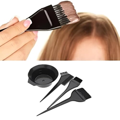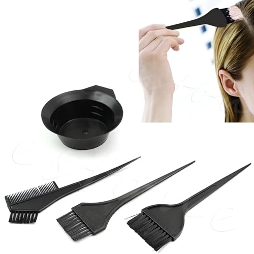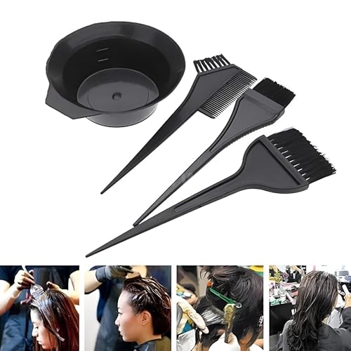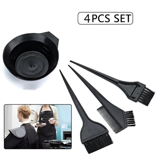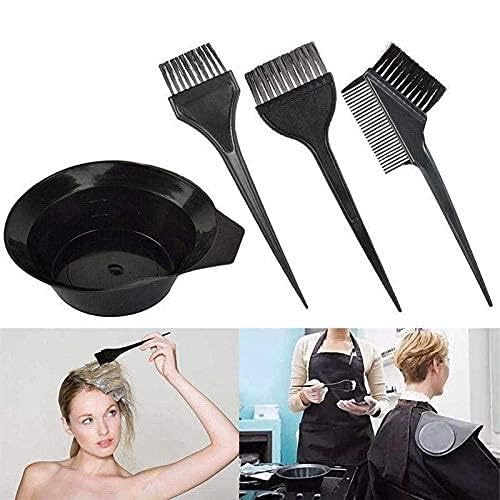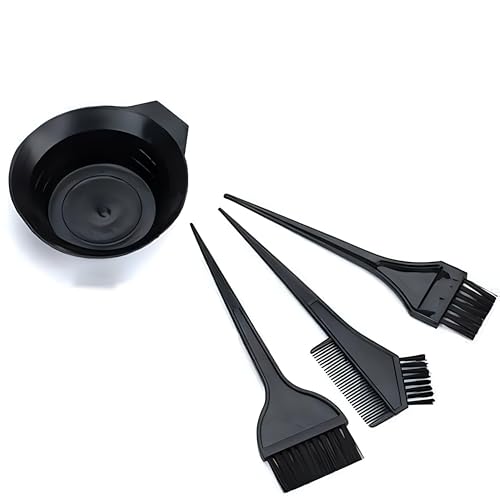 Generic - مجموعة تلوين الشعر مع مشط مزدوج الأطراف وأوعية خلط وفرش توزيع واكسسوارات أساسية للاستخدام الاحترافي في صالونات التجميل او المنزل، لون أسود، 4 قطع
