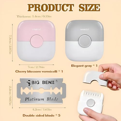 - تتميز أداة قص الشعر هذه بتصميم أنيق مزدوج الجانب بقطر صغير يبلغ 8 سم فقط. شكلها الدائري يعني أنه يمكن تخزينها بسهولة في شنط اليد والمحافظ والجيوب، مما يجعلها مثالية للحمل أثناء السفر أو في المواعيد. يضمن الغطاء الواقي بقاء الشفرات الحادة مخفية بأمان، مما يمنع الخدوش العرضية لمتعلقاتك عند عدم الاستخدام. تصميمها الأنيق والعملي يجعلها مثالية لأي شخص يبحث عن تصفيف الشعر بشكل مريح.