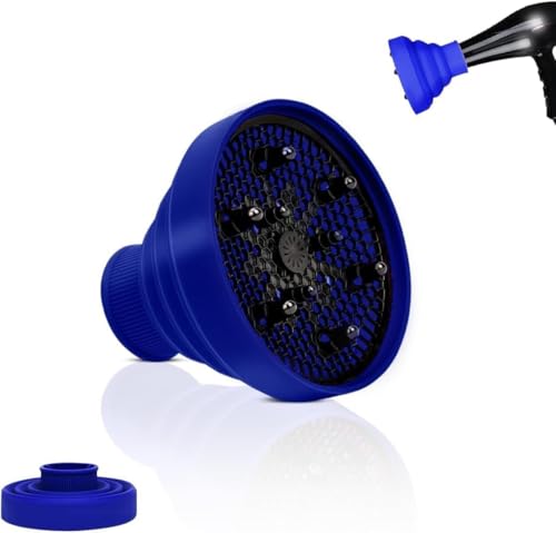 Generic - وصلة مجفف شعر لتوزيع الهواء قابلة للطي من السيليكون بمقاس عالمي لتصفيف الشعر المجعد أو المموج لتسريع تجفيف الشعر بدون تجعد بقطر قابل للتعديل (لون أزرق)