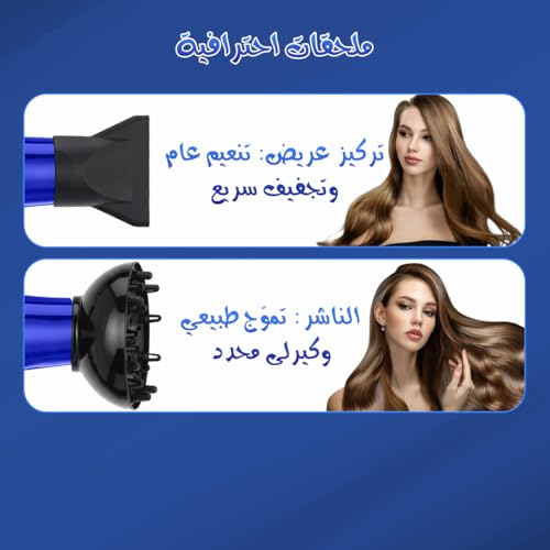 - ملحقات للاستخدام اليومي: استخدم الموزع لرفع التموجات الطبيعية وحماية التجعيدات ؛ اضغط على فوهة المكثف للحصول على نفخ أنيق وحواف دقيقة حول الشراشيب.