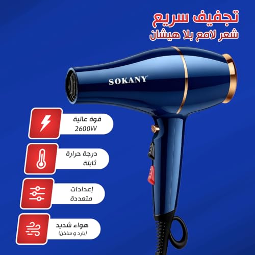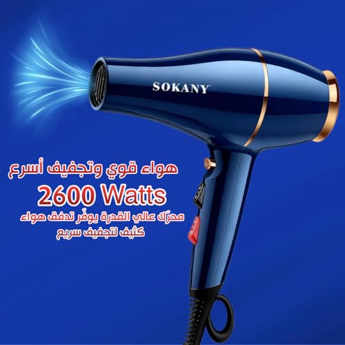 Sokany - مجفف شعر احترافي ايوني 2600w سريع الجفاف بالهواء البارد والساخن بسرعتين مع مكثف للحماية من الحرارة الزائدة، SK-2216
