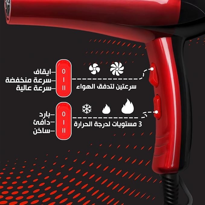 - جففي شعرك في وقت قصير بفضل محرك 3000 وات القوي الذي يجفف الشعر الكثيف بسرعة، خيار مثالي للصباحات العاجلة في مصر.