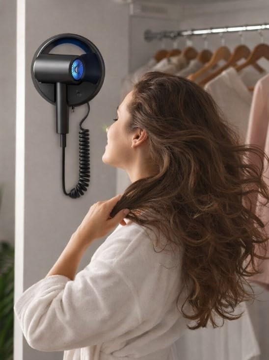 - مجفف شعر مثبت على الحائط يوفر المساحة: يحافظ على المنضدة نظيفة والسلك بعيدًا عن الطريق - مثالي للصباح المصري عندما يحتاج الجميع إلى المرآة في وقت واحد. قم بتركيبه مرة واحدة، وأمسكه بسرعة، وعلقه مرة أخرى بشكل أنيق.
