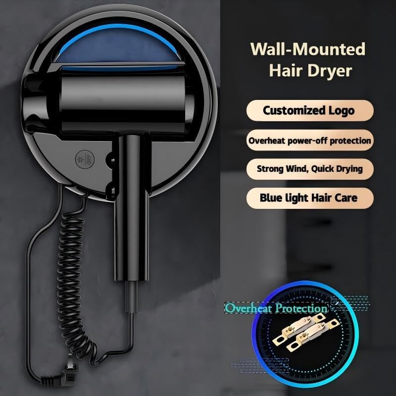 - تركيب آمن للحمامات المرتبة: يحافظ حامل الحائط على المجفف مخزنًا بأمان وثبات في نفس المكان، مما يوفر إعدادًا أنيقًا على طراز الفندق لحمامات الضيوف والإيجارات والصالونات والشقق.