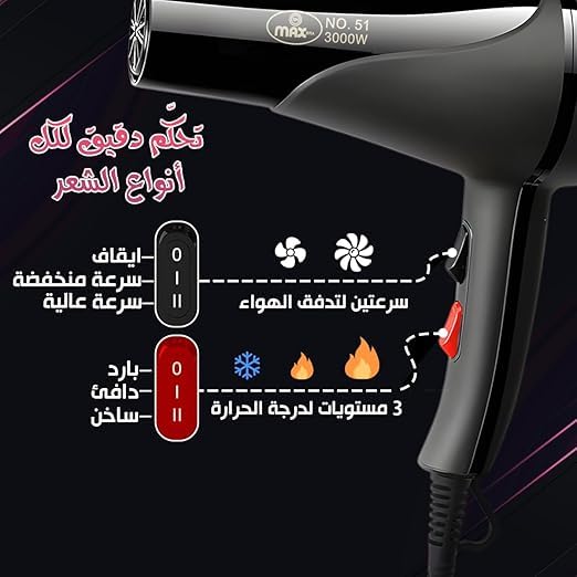 - مصممة للاستخدام اليومي في مصر: شعور خفيف الوزن وسهل التحكم وتصميم موديل ماكس-51 يناسب الاستخدام المنزلي وصالونات التجميل بميزانية محدودة وسكن الطلاب.
