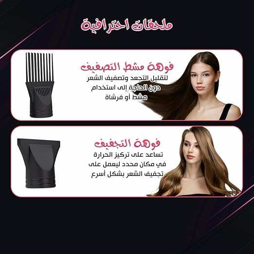 - تدفق هواء سلس وموجه: استخدمي مكثف الهواء القابل للفصل وفوهة المشط لتوجيه الحرارة حيثما تحتاجين إليه للحصول على نتائج أنيقة وخالية من التشابك.