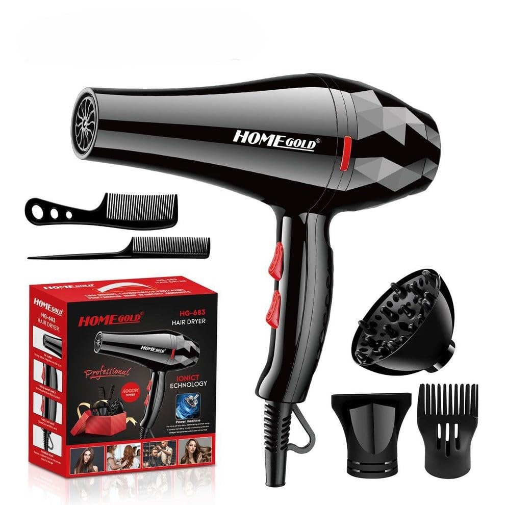 Generic - مجفف شعر 4000 وات طراز HG-683 بتقنية أيونية موفر للطاقة منخفض الكربون حماية من الحرارة الزائدة ببراءة اختراع مع 6 مفاتيح وقبضة مريحة مقاومة للانفجار