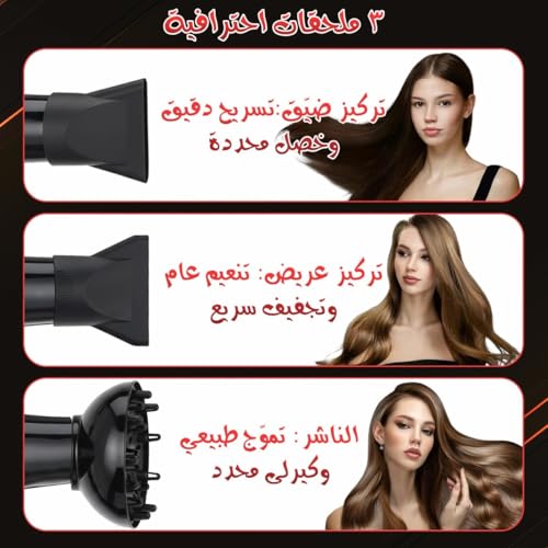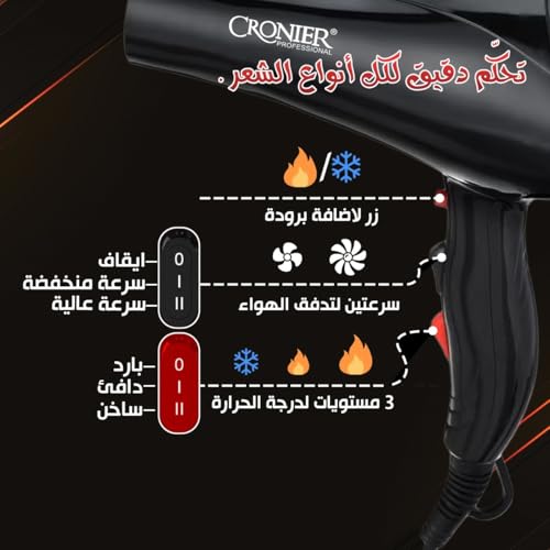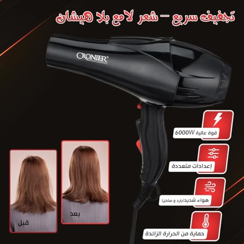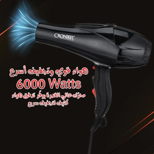 Generic - مجفف شعر احترافي 6000 واط مع موزع هواء وفوهة طراز CR-9933 – تجفيف سريع، منخفض الضوضاء، أيوني، مع سرعتين و3 إعدادات حرارة، ومكثف هواء قابل للفصل