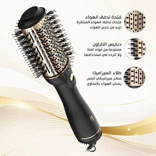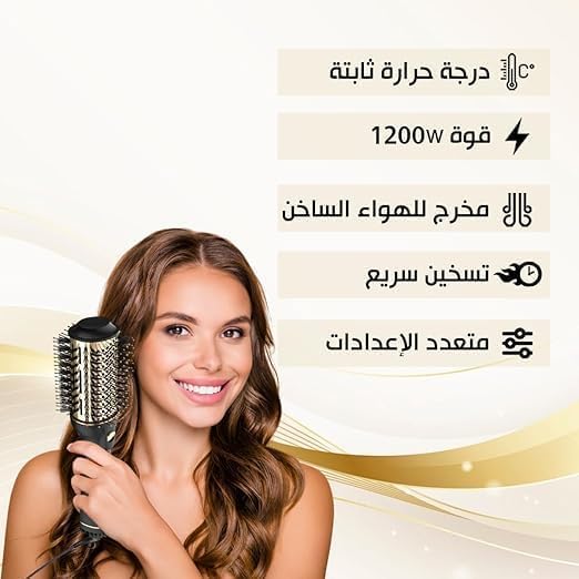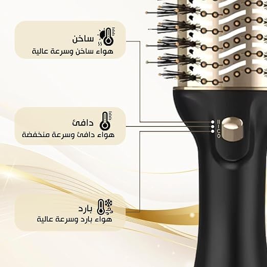- أداة تصفيف الكل في واحد: يجمع بين قدرات التجفيف والتصفيف في جهاز واحد، مما يجعله مثاليًا لتسريح شعرك وفك تشابكه وتصفيفه بسهولة.