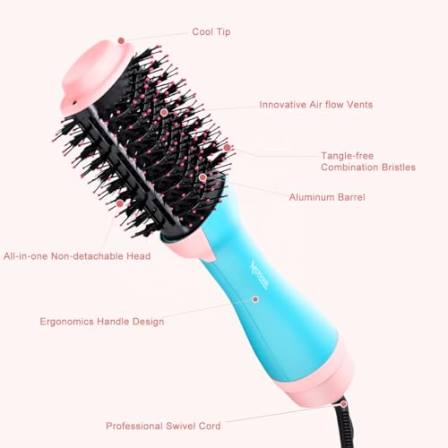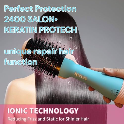 Generic - فرشاة مجفف شعر طراز MO-7169 بقدرة 2400 وات، مجفف هواء ساخن على شكل مشط متعدد الوظائف بطلاء سيراميك معزز بالكيراتين والأيونات، سلك دوار 360 درجة، فرشاة تصفيف مناسبة لجميع انواع الشعر