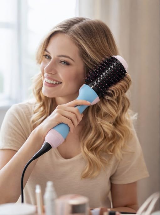 - تناسب جميع أنواع الشعر: مثالية لجميع أنواع الشعر (الناعم الأملس والمموج والمجعد أو الخشن)، يساعدكِ على رفع الشعر من الجذور وتنعيم خصلاته ولف الأطراف للحصول على إطلالة صالون في منزلكِ بشكل يومي.