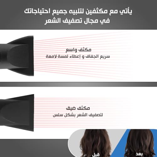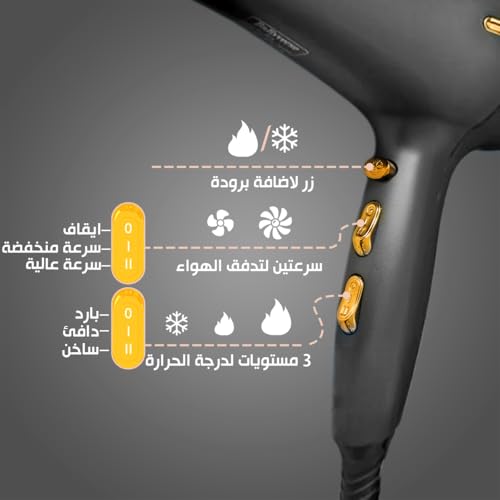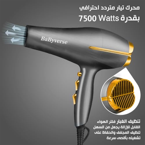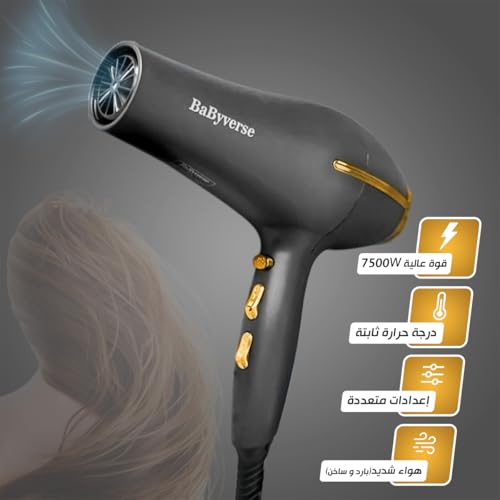 - مجفف شعر احترافي بقوة عالية: مجهز بمحرك قوي 7500 وات، مما يضمن تجفيف سريع وفعال لجميع أنواع الشعر.