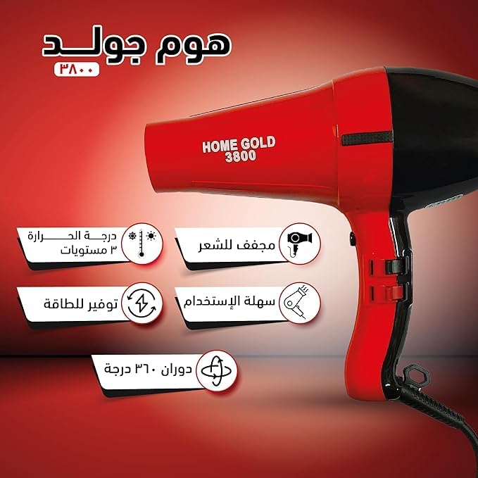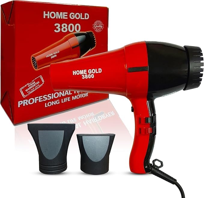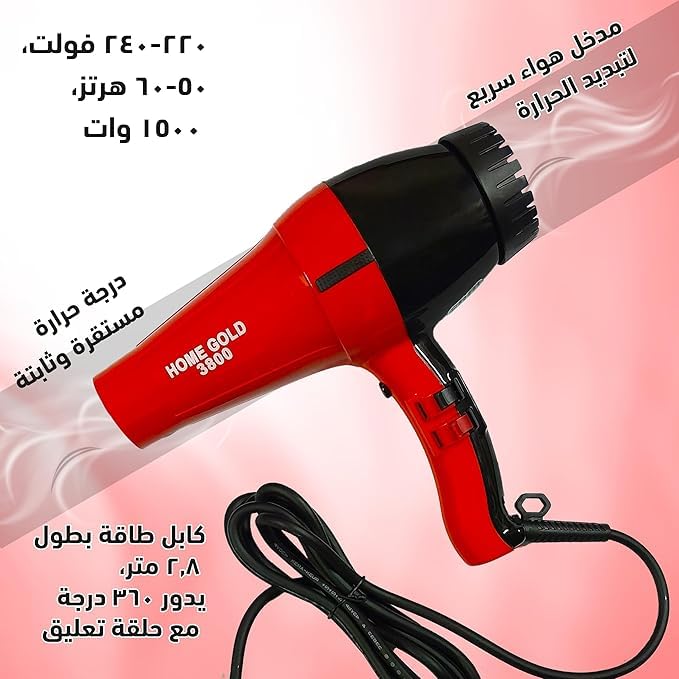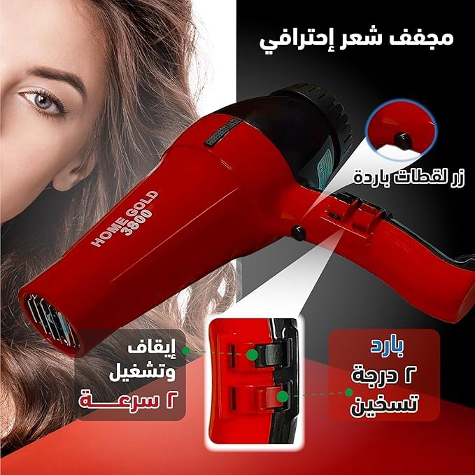 Generic - مجفف شعر احترافي 1500 واط - محرك في ال ال، 4 اعدادات للحرارة، وضعين للسرعة، مقبض مريح، تجفيف سريع لجميع انواع الشعر، مجفف شعر بجودة صالونات التجميل للاستخدام المنزلي (موديل 3800)