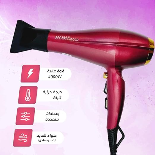 Generic - مجفف شعر احترافي طراز HG-803، بتصميم أنيق بتقنية الأيونات بقوة 4000 وات لشعر ناعم، تجفيف سريع، إعدادات حرارة وسرعة قابلة للتعديل، حماية من الحرارة الزائدة