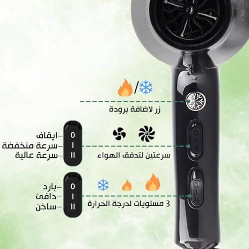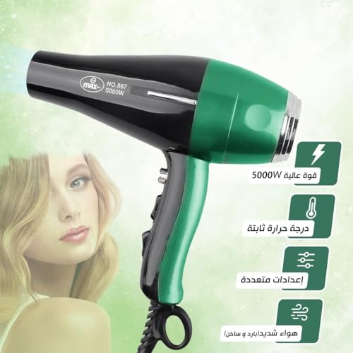 Generic - مجفف شعر احترافي MA-887 بقوة 5000 وات بتصميم هواء ذكي ومحرك تيار متردد للحصول على نتائج سريعة بجودة صالونات التجميل في المنزل (أخضر وأسود)