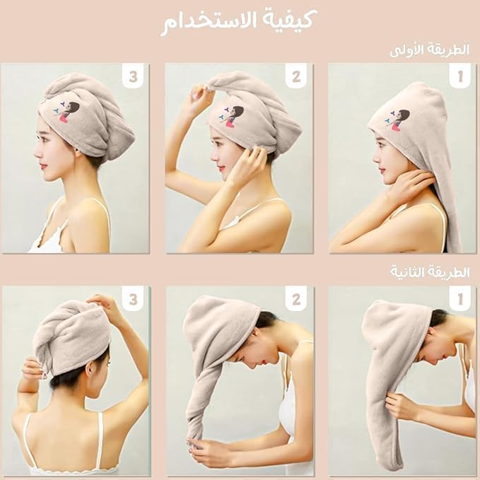 - لطيف على الشعر - مادة ناعمة تحمي الشعر الرطب والمجعد من التجعد والتقصف، على عكس المناشف القطنية الخشنة.