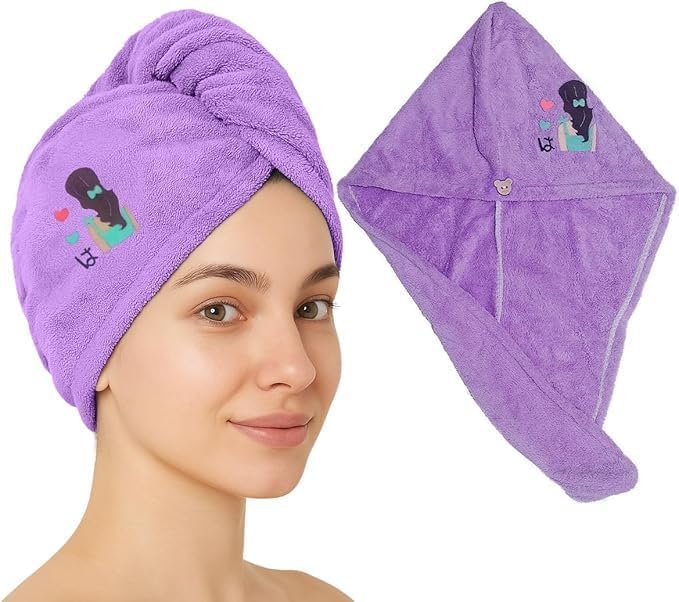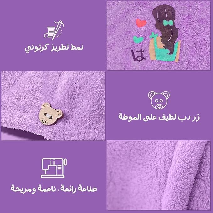 - ملاءمة آمنة ومريحة - تصميم ملفوف مع زر إغلاق يحافظ على الفوطة في مكانها، مما يسمح لك بالتحرك بحرية أثناء جفافها.