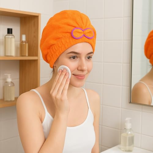 Generic - فوطة لتجفيف الشعر من المايكروفايبر سريعة الجفاف للشعر الرطب والمجعد وتوفر حماية من الحرارة فوطة استحمام ناعمة وخفيفة الوزن للنساء والبنات وصالونات التجميل (لون برتقالي)